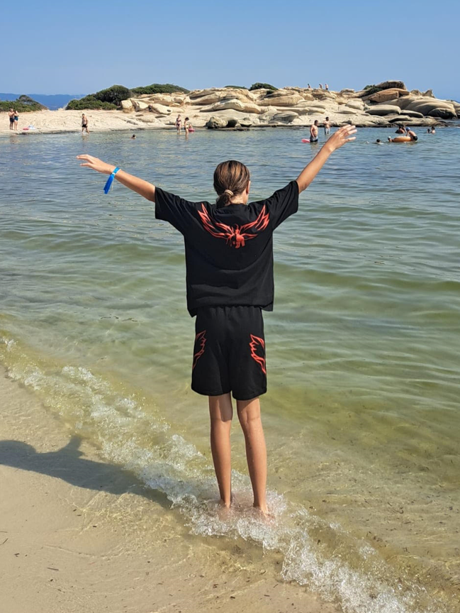 Le dos du T-shirt le montre avec des ailes, ce qui représente sa mémoire. Cette marque nous rappelle de prendre soin les uns des autres et de vivre pleinement. On n’a qu’une seule chance dans cette vie, lâche-toi. <3